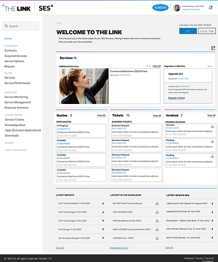 Over the course of the internship I was tasked with reworking a vast amount of different frames. Most throughout the customer portal contained listed infomation for the users. However, the area I had the most effect on during my time in the internship was the Homepage. Below is the general transistional developemt of the Homepage over the course of my time at SES.